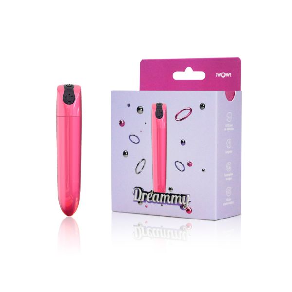 Enamórate de la nueva Dreammy. La bala vibradora ahora en un tamaño más grande y con punta, perfecta para estimulación externa e interna. 12 ritmos de vibración que alternas pulsaciones y escalas Hecha de plástico ABS rosa metálico Completamente Recargable Botón de encendido/apagado y cambios de ritmo en la punta Incluye Bolsa de tela y cable cargador
