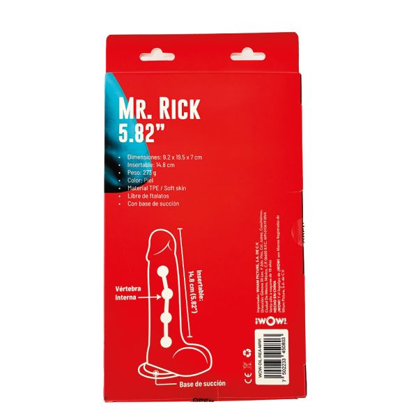 Envuélvete en las caricias de Mr Rick el eterno enamorado. Dildo hiper realista de 19.5 cm x 7 cm de diámetro con cuerpo vertebrado interno. Detallado a mano para un máximo realismo, textura de venas, con testículos y base de succión para usarlo con arnés o superficies lisas. Hecho de TPE suave, flexible. Medida total. 9.2x19.5x7. Medida insertable 14.8 cm